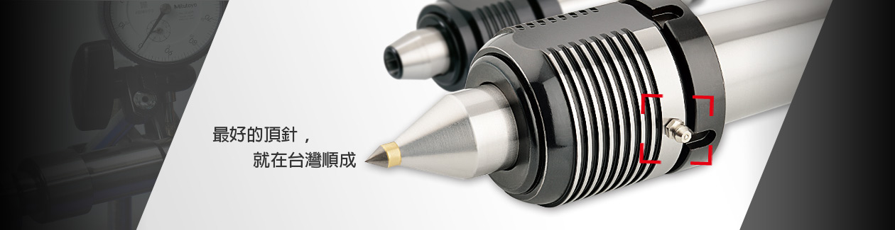 台灣順成採用「CNC 內徑外徑同步研磨機」與「CNC 內徑研磨機」加工生產,每支頂針 的預壓值相同,經磨合期後頂針軸承間隙能完 美緊密配合,提供高速、高精度車削加工環境 的精湛表現。還有獨創的油嘴設計,無須拆卸 即可換油保養。具防水性,每日使用SKF 潤 滑油換油,可延長頂針使用期限,比一般未換 油的頂針多達三倍壽命。
